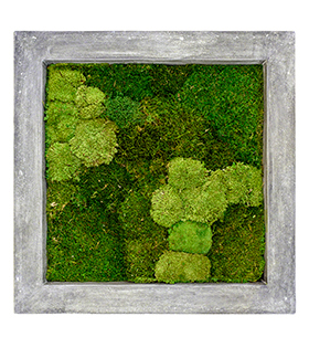 Картина из мха квадратня включает в себя 30% шарового мха и 70% плоского.
