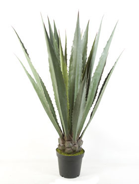 Агава H130 см зеленая в пластиковом черном кашпо.
