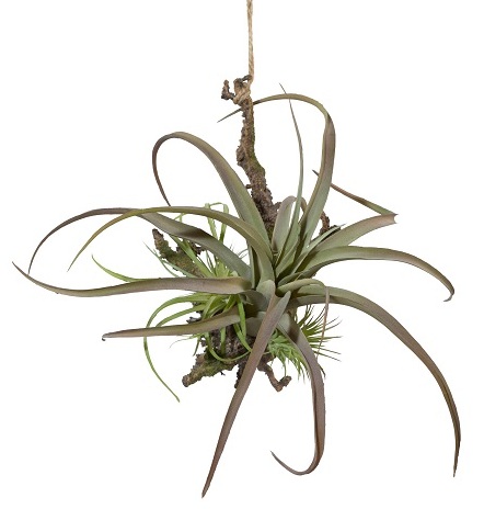 - Тилландсия H19 см на коряге зелено-бордовая подвесная.