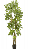 Полисциас Фабиан нескольких высот в пластиковом кашпо имеет различное количество листьев на дереве.
