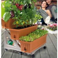 Подставка под балконные ящики на колесиках в комплекте с тремя балкоными ящиками.