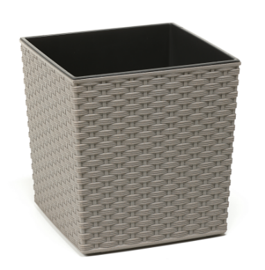 Кашпо JUKA ECO rattan / ЮКА ЭКО ротанг с вкладышем квадратной формы с поверхностью в виде плетения.