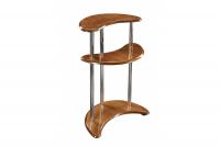 Элегантная подставка, сделанная с использованием стальных полых металлических хромированных трубок и полок в виде полумесяцев. Интересное и крепкое исполнение.