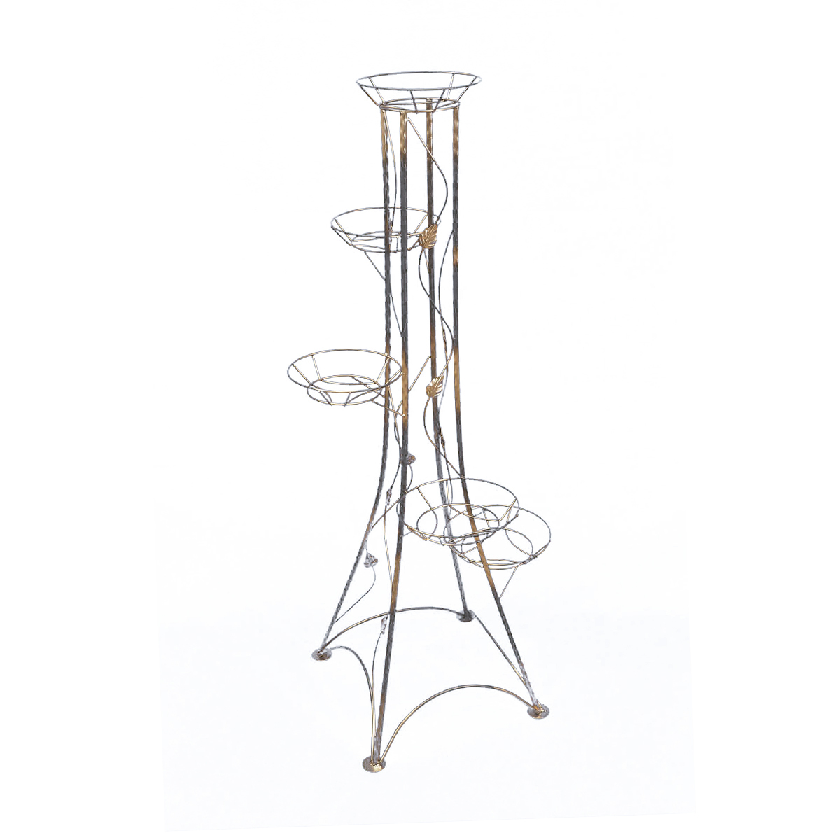 Стойка "Береза" на 5 горшков Квадрат сделана из квадратного профиля диаметром 10мм, окрашена черной порошковой краской с напылением золота и декорирована коваными листочками, что позволяет изделию благородно выглядеть в любом интерьере. Размещение больших корзинок внизу подставки придает изделию дополнительную устойчивость, так как Вы с легкостью сможете расположить самые крупные растения снизу, а небольшие - наверху. Большое расстояние между корзинками способствует многолетнему росту цветов.
