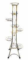 Стойка "Береза" на 9 гошков Квадрат сделана из квадратного профиля диаметром 10мм, окрашена черной порошковой краской с напылением золота и декорирована коваными листочками, что позволяет изделию благородно выглядеть в любом интерьере. Размещение больших корзинок внизу подставки придает изделию дополнительную устойчивость, так как Вы с легкостью сможете расположить самые крупные растения снизу, а небольшие - наверху. Большое расстояние между корзинками способствует многолетнему росту цветов.