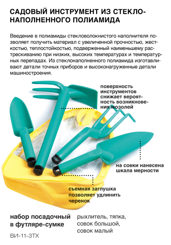 Набор посадочный из 4-х предметов в футляре-сумке (рыхлитель, тяпка, совок большой, совок малый)