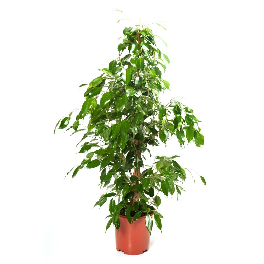 Фикус Бенджамина (Ficus benjamina) - вечнозеленые деревца с тонкими поникающими побегами и с небольшими многочисленными листьями разной окраски и формы. Фикус этого вида выглядит очень ажурным; в домашниx условиях может вытянуться до 2 метров.