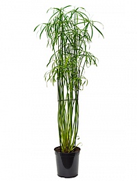 Циперус зонтичный (Cyperus alternifolius). Обилен в болотах Египта и Эфиопии, встречается в Тропической Центральной Африке. Многолетнее травянистое растение, до 3 м высотой. Стебли прямые, крепкие, в верхней части трехгранные, завершающиеся густой розеткой листьев: листья длинные, свисающие — фото. Из пазух листьев выходят многоцветковые (до 100 цветков) соцветия на тонких цветоножках. Высокодекоративное растение, выращивается в умеренно теплых и теплых помещениях во влажной среде, в горшках, но нередко высаживают в грунт (обеспечивают обильную поливку). Как известно, побеги этого папируса могут быть использованы для устройства лодок, а также для изготовления бумаги.