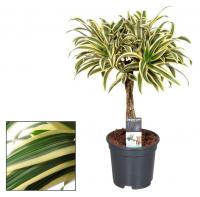 Многочисленные ветки отходят от главного ствола. Листья насыщенного зеленого цвета по краям игриво оторочены яркими желтыми полосами. Имеет отичительную особенность от своих сородичей драцен: ветви растения отходят с самого основания ствола. Эта особенность делает деревце похожим не на пальму, а на ветвистый кустарник.