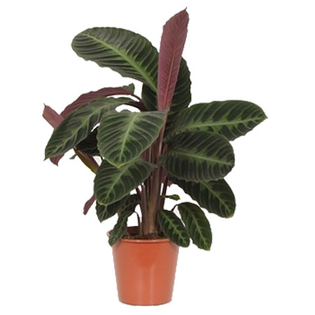 Уход: Калатеи - сравнительно теневыносливые растения, хорошо развиваются при рассеянном свете, любят яркий рассеянный свет. В зимнее время растениям также желательно хорошее освещение. Плохо переносят прямые солнечные лучи в период весенних и летних месяцев. Размер и окраска листьев зависят от того, удачно ли защищено растение от солнца. Если свет очень яркий, листья теряют свою окраску, а также уменьшается листовая пластинка. Хорошо растут вблизи окон восточного и западного направления, возле окон южного направления обязательно притенение от прямого солнца. Могут расти калатеи при искусственном освещении люминесцентными лампами в течение 16 часов в день. В весенне-летний период в течение дня подходящая для калатей температура находится в районе 22-30°С, ночью чуть прохладнее. Зимой - даже ночью - не ниже 18°С и не выше 25°С. Растения очень чувствительны к перепадам температуры и сквознякам. Очень важно выдерживать температуру почвы 18-20°С, летом около 22°С. Переохлаждение корней губительно для растения. Полив требуется обильный, по мере подсыхания верхнего слоя субстрата. Осенью и зимой полив несколько уменьшают. Поливают теплой мягкой хорошо отстоянной водой. Важно следить за тем, чтобы не пересушить, не заболотить почву и не допустить охлаждения корневой системы. Особенно чувствительна к переувлажнению субстрата калатея Макоя. Калатея предпочитает повышенную влажность воздуха (от 70 до 90%). Для нее необходимо в течение всего года регулярное опрыскивание. Опрыскивают хорошо отстоянной или отфильтрованной водой, мелким распылением, так как крупные капли воды не должны попадать на листья - на них могут появиться темные пятна.