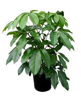 Уход. Растение устраивает комнатная температура -от 18 до 22 °С, зимой чуть ниже - от 16 до 18 °С. Сквозняков шеффлера не любит, но на свежем воздухе летом чувствует себя хорошо. Зимой растение поливают не более 2 раз в месяц. Весной и летом полив увеличивают до умеренного, но не переливают растение, поскольку очень влажная почва в горшке приводит к сбрасыванию листьев. Не следует и пересушивать почву. Если шеффлера находится на улице, под солнцем, поливать нужно чаще, почва должна быть умеренно влажной. А вот влажность воздуха растению требуется повышенная. Значит, следует регулярно опрыскивать его водой из пульверизатора. Пересаживают растение по желанию 1 раз в год или 1 раз в 2 года.