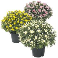 Хризантема (Chrysanthemum) - в комнатах выращивают так называемые корейские хризантемы. Это компактные растения с небольшими простыми цветками. Цветки собраны в широкие соцветия белой,желтой,розовой окраски всевозможных оттенков. Цветение продолжительное.