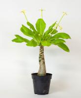 Бригамия (Brighamia) пахикуальный стволовой суккулент принадлежит к подсемейству лобелиевых семейства колокольчиковых. В домашних условиях бригамии довольно нетребовательны и неприхотливы. В народе их часто называют пальмами, за свой внешний вид - относительно гладкий не древеснеющий, равномерно сужающийся кверху ствол увенчан развесистыми мясистыми листьями, покрытые восковым налетом.