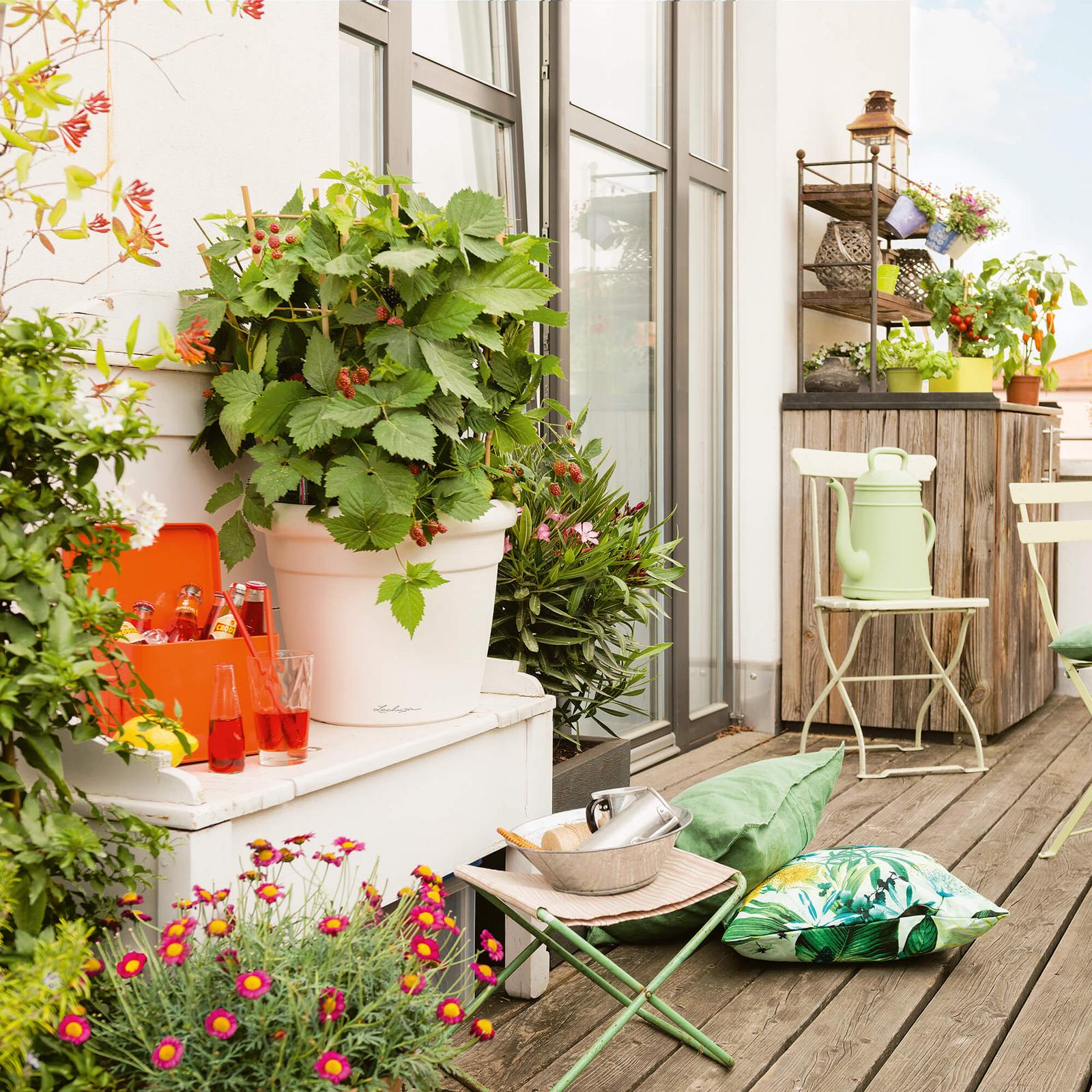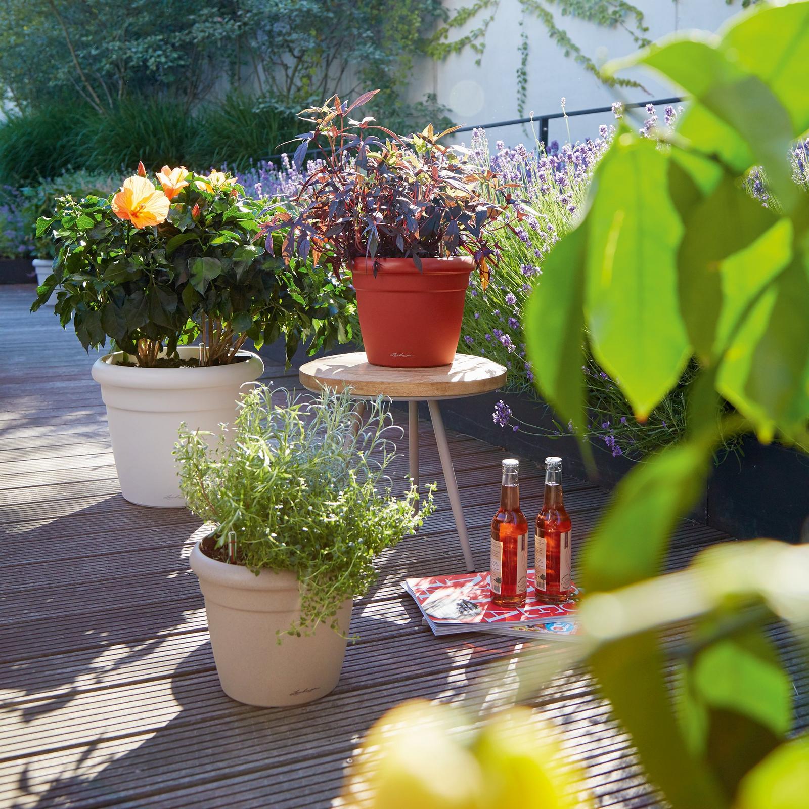 Новое кашпо RUSTICO Color создает итальянский стиль и особенно хорошо раскрывает красоту южных растений: цитрусовых, пальмы или розмарина. Кашпо RUSTICO Color в современных расцветках серый камень, светло-бежевый и графитовый черный идеально соответствует цветам CANTO и CUBETO Color. Создайте итальянскую летнюю атмосферу с цветными ройбушами.