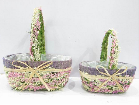 Набор включает в себя две корзины из травы разного размера цвет лавандовый: