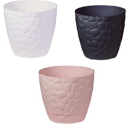 Стенки кашпо украшены объемной текстурой, имитирующей морскую гальку