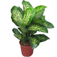 Диффенбахия (Dieffenbachia) - вечнозеленое многолетние растение с крупными листьями, красивой формы, с пёстрым рисунком расположенными на стеблях поочередно. Стебель толстый, крепкий. Рисунок на листьях представляет собой полоски, пятнышки, крапинки разных оттенков от светло-зеленых до тёмно-жёлтых. Яркая окраска растения создаёт тёплую, радостную атмосферу в помещении.