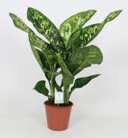 Диффенбахия (Dieffenbachia) - вечнозеленое многолетние растение с крупными листьями, красивой формы, с пёстрым рисунком расположенными на стеблях поочередно. Стебель толстый, крепкий. Рисунок на листьях представляет собой полоски, пятнышки, крапинки разных оттенков от светло-зеленых до тёмно-жёлтых. Яркая окраска растения создаёт тёплую, радостную атмосферу в помещении.
