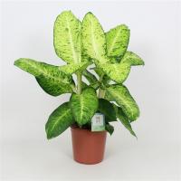 Диффенбахия (Dieffenbachia) - вечнозеленое многолетние растение с крупными листьями, красивой формы, с пёстрым рисунком расположенными на стеблях поочередно. Стебель толстый, крепкий. Рисунок на листьях представляет собой полоски, пятнышки, крапинки разных оттенков от светло-зеленых до тёмно-жёлтых. Яркая окраска растения создаёт тёплую, радостную атмосферу в помещении.