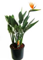 Стрелиция (Strelitzia) - одно из самых ярких и эффектных комнатных растений. Родиной стрелиции является остров Мадагаскар (Южная Африка). Это вечнозеленое растение с весловидными листьями на длинных, до 30 - 60 см, черешках. Стрелиция достигает довольно крупных размеров (1 - 1,3 метра в высоту). Внешне это растение напоминает банановую пальму в миниатюре.