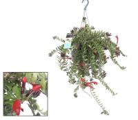 Эсхинантус (Aeschynanthus)-отличается красноватым оттенком всего растения, с возрастом усиливающимся на свету, и узкими яйцевидными листьями. Цветок имеет выраженную чашечку длиной до 3,5 см. темно-бордовой окраски со слабым белым опушением. Венчик ярко-красный, внутри с желтыми полосками, превышает по длине чашечку в 1,5-2 раза. Распространен сорт Mona Liza.