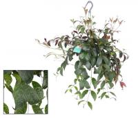 Эсхинантус (Aeschynanthus)-отличается красноватым оттенком всего растения, с возрастом усиливающимся на свету, и узкими яйцевидными листьями. Цветок имеет выраженную чашечку длиной до 3,5 см. темно-бордовой окраски со слабым белым опушением. Венчик ярко-красный, внутри с желтыми полосками, превышает по длине чашечку в 1,5-2 раза. Распространен сорт Mona Liza.