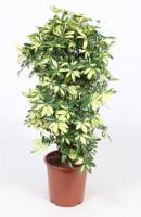Шеффлера (Schefflera) - крупный вечнозеленый кустарник из рода аралиевых, дальний родственник женьшеня, достигающий в домашних условиях высоты 2-3 метров, а в дикой шеффлера может вырасти до 20 метров в высоту в зависимости от разновидности сорта. Англичане называют шеффлеру „деревом-зонтиком” из-за своеобразного расположения листьев. Эти вечнозеленые деревца и кустарники обладают оригинальными листьями, напоминающими растопыренные пальцы. Причем, чем старше растение, тем более „кружевной” становится его листва. Розетки молодых растений имеют по 6-8 листиков, а более взрослых – до 16 штук.