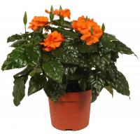Кроссандра (Crossandra) - Многолетние травянистые, низкорослые, обильноцветущие растения. Листья ланцетные; нижние 10-12 см. длиной идо 2,5 см. шириной, суживающиеся книзу, крыловидные в нижней части, в серебристых жилках; верхние короче и уже в 2 раза нижних, на коротких черешках, до 1 см. длиной. Соцветие короткое, до 6 см. длиной. Цветки желтовато-оранжевые.