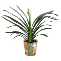 Кливия (Clivia) - Вечнозеленое многолетние травянистое растение, бесстебельное, многоцветковое. Листья влагалищные, плотно охватывающие друг друга, образующие ложный стебель, линейные или мечевидные. Под землей кливия развивает корневище, к которому прикреплены утолщенные основания листьев и сами листья. Кливия находится как бы посередине между луковичными и корневищными растениями. Цветки колокольчатые собранные в зонтик.