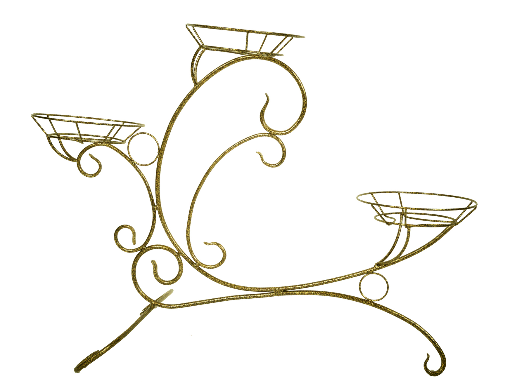 Напольная подставка для цветов Конек малый на 3 горшка сделана из прочного стального прутка диаметром 8 мм. Роль ножек исполняют изогнутые прутки, обеспечивая устойчивое расположение цветочных горшков на подставке