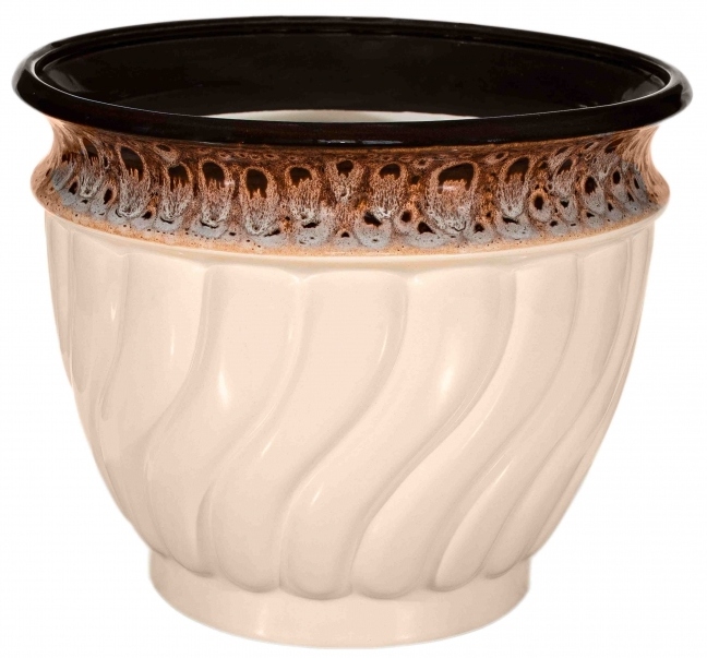 Популярный горшок "Танго" красивой и очень удобной формы для выращивания растений выполнен в традиционной бежевой глазуровке с коричневым обрамлением.