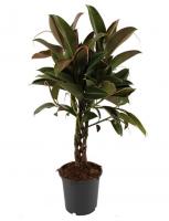 Фикус эластика Мелани Ficus elastica Melany имеет блестящие глянцевые листья зеленоватого бордового цвета. Необычно, что он более компактен, чем другие разновидности каучуконосного фикуса. Родиной фикуса Мелани считается северо-восточная Индия и южная часть Индонезии. Кстати, именно здесь фикус почитается буддистами как священное дерево. Более того, это одно из самых эффективных растений для фильтрации воздуха.