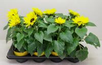 Гелиантус (Подсолнух) Helianthus - компактный однолетник высотой до 75 см с блестящими темно-зелеными яйцевидными листьями. Цветочные головки желтые с коричневыми центрами достигают до 17 см в диаметре. Идеально для выращивания в контейнерах . Цветы привлекают пчел и других насекомых, а съедобные семена дают пищу птицам.
