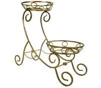 Подставка напольная на 2 цветка сделана из стального квадратного профиля диаметром 10 мм и окрашена порошковой краской антик-золото.