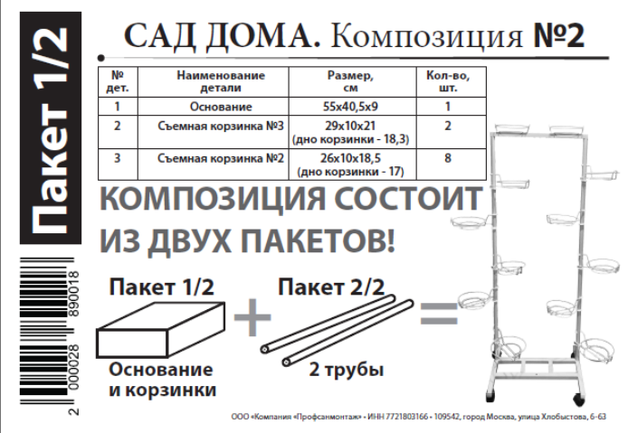 2. В комплект входит 12 корзин: 10 съемных и 2 неподвижные корзинки.