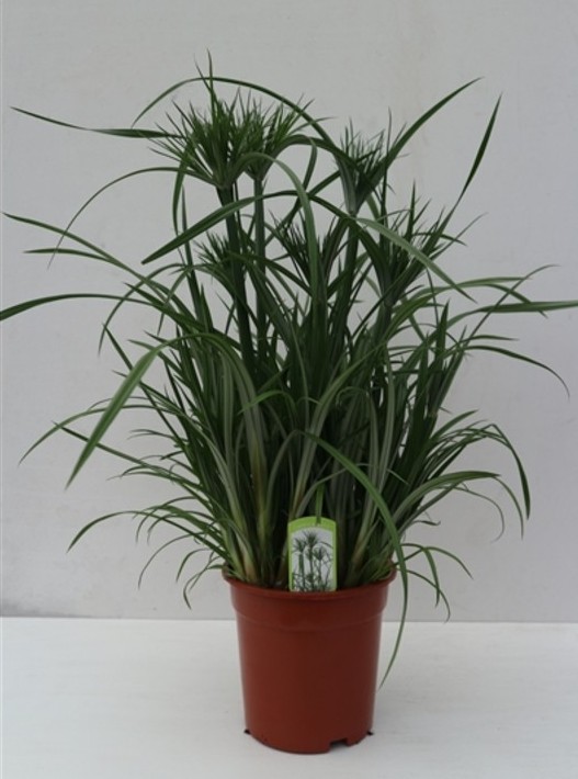 Циперус папирус (Cyperus papyrus). Обилен в болотах Египта и Эфиопии, встречается в Тропической Центральной Африке. Многолетнее травянистое растение, до 3 м высотой. Стебли прямые, крепкие, в верхней части трехгранные, завершающиеся густой розеткой листьев: листья длинные, свисающие — фото. Из пазух листьев выходят многоцветковые (до 100 цветков) соцветия на тонких цветоножках. Высокодекоративное растение, выращивается в умеренно теплых и теплых помещениях во влажной среде, в горшках, но нередко высаживают в грунт (обеспечивают обильную поливку). Как известно, побеги этого папируса могут быть использованы для устройства лодок, а также для изготовления бумаги.