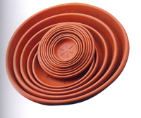 Подставка терракотового цвета подойдет к пластиковому кашпо для выращивания как многолетних, так и однолетних растений.