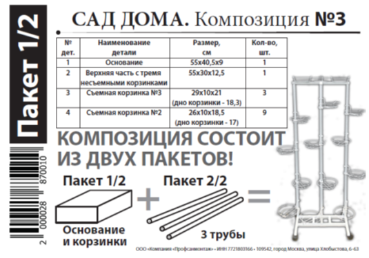 В начальную композицию входит 12 съемных и 3 не съемные корзинки.