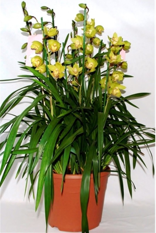 Орхидея Цимбидиум (Orchid Cymbidium) - самые надежные орхидеи для содержания в комнатных условиях. Отдельные виды достигают в высоту 70 см. Цветет зимой, в течение нескольких месяцев. Цветки пастельных оттенков (диаметр до 4 см.) расположены на крепких прямостоящих цветоносах.