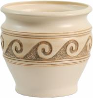 Комплект керамических горшков "Итака" состоит из четырёх изделий разного размера. Выполнен в глазуровке слоновая кость и оформлен античным декором в виде волн.