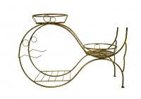 Подставка напольная РЫБА на 2 горшка изготовлена из стального прутка диаметром 10 мм, окрашенного черной порошковой краской с напылением золота. Изделие в основании имеет дополнительное пространство, которое подойдет для размещения лейки или же маленького цветочного кашпо.