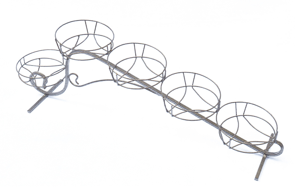 Подставка настольная ГОРКА на 5 горшков сделана из стального квадратного профиля диаметром 10 мм и окрашена специальной порошковой краской «антик – золото». Подставка имеет устойчивое основание.