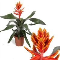 Эхмея Пепита Элеганс (Aechmea Pepita Elegant Flames) - потрясающая бромелия из тропических лесов Южной Америки, она имеет розетку из густой, в форме меча, средне-зеленой листвы, из которой на центральном стебле возвышается красно-желтый огненно-красный цветок.